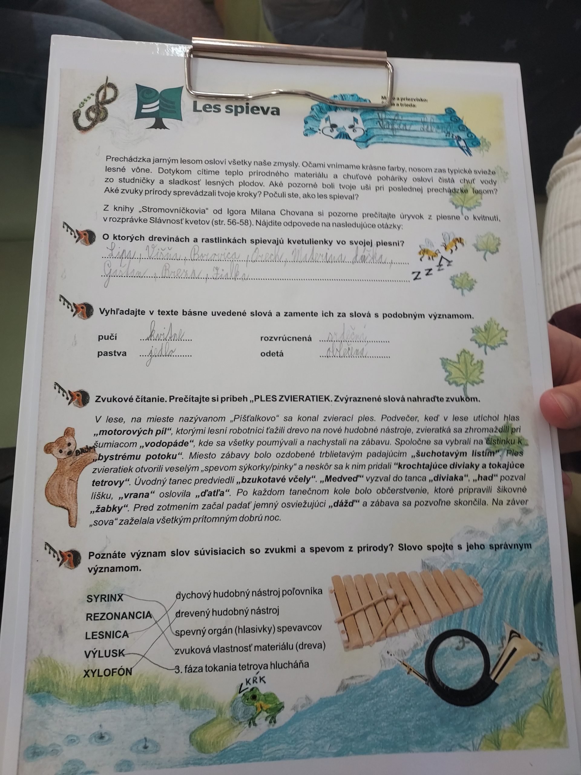Tento mesiac známy ako Mesiac lesov, zavŕšila IV.A podujatím v Hornozemplínskej knižnici. Stretnutie s lesníkmi bolo plné aktivít. V úvode si žiaci vypočuli rôzne nahrávky zvukov, ktoré môžeme počuť v lese. Žiaci tak identifikovali zvuky cicavcov, vtákov, drobného hmyzu i zvuky neživej prírody. Potom si vypočuli text pod názvom Les spieva, z ktorého vypracovávali úlohy na čitateľskú gramotnosť. Dozvedeli sa čo je pastva, výlusk a syrinx. Zahrali sa hru na zvuky lesa. V závere stretnutia si hádankami vo veršoch zopakovali obyvateľov lesa a jeho okolia.