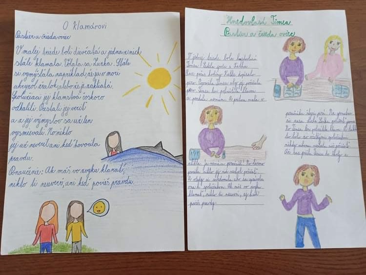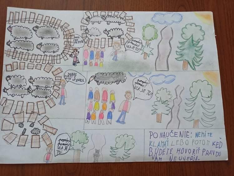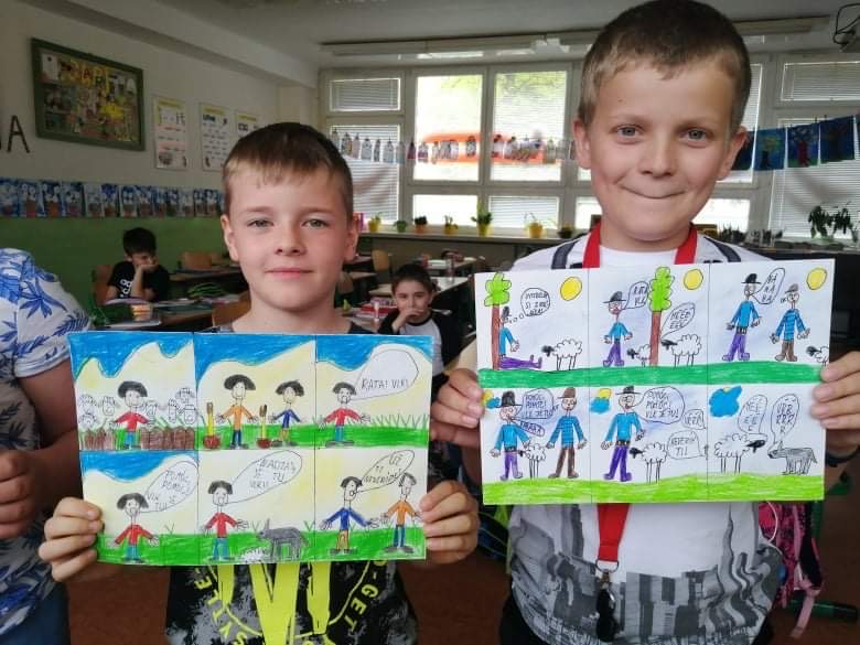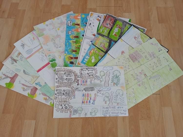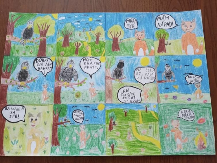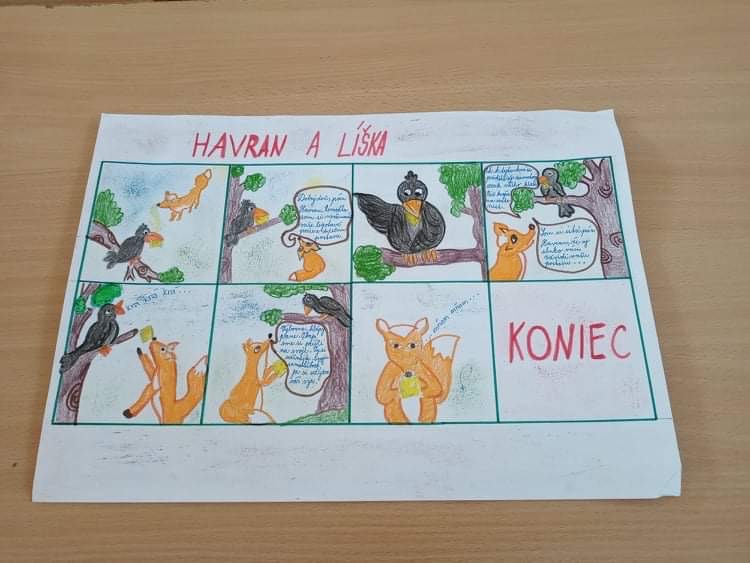 snažili bájky premietnuť do komiksov, štvrtáci sa snažili situáciu a poučenie z bájky