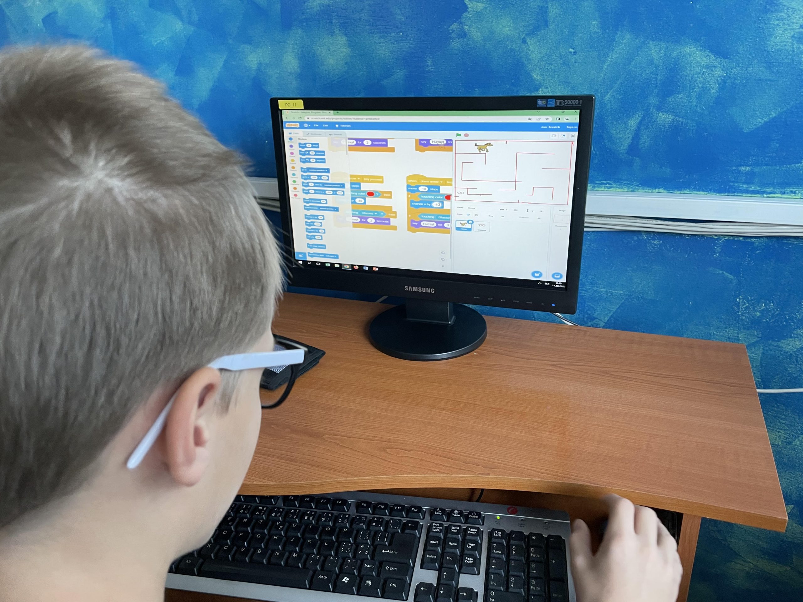 žiakov na celom svete a v online prostredí Scratch naprogramovali hru Bludisko. Žiaci hravo