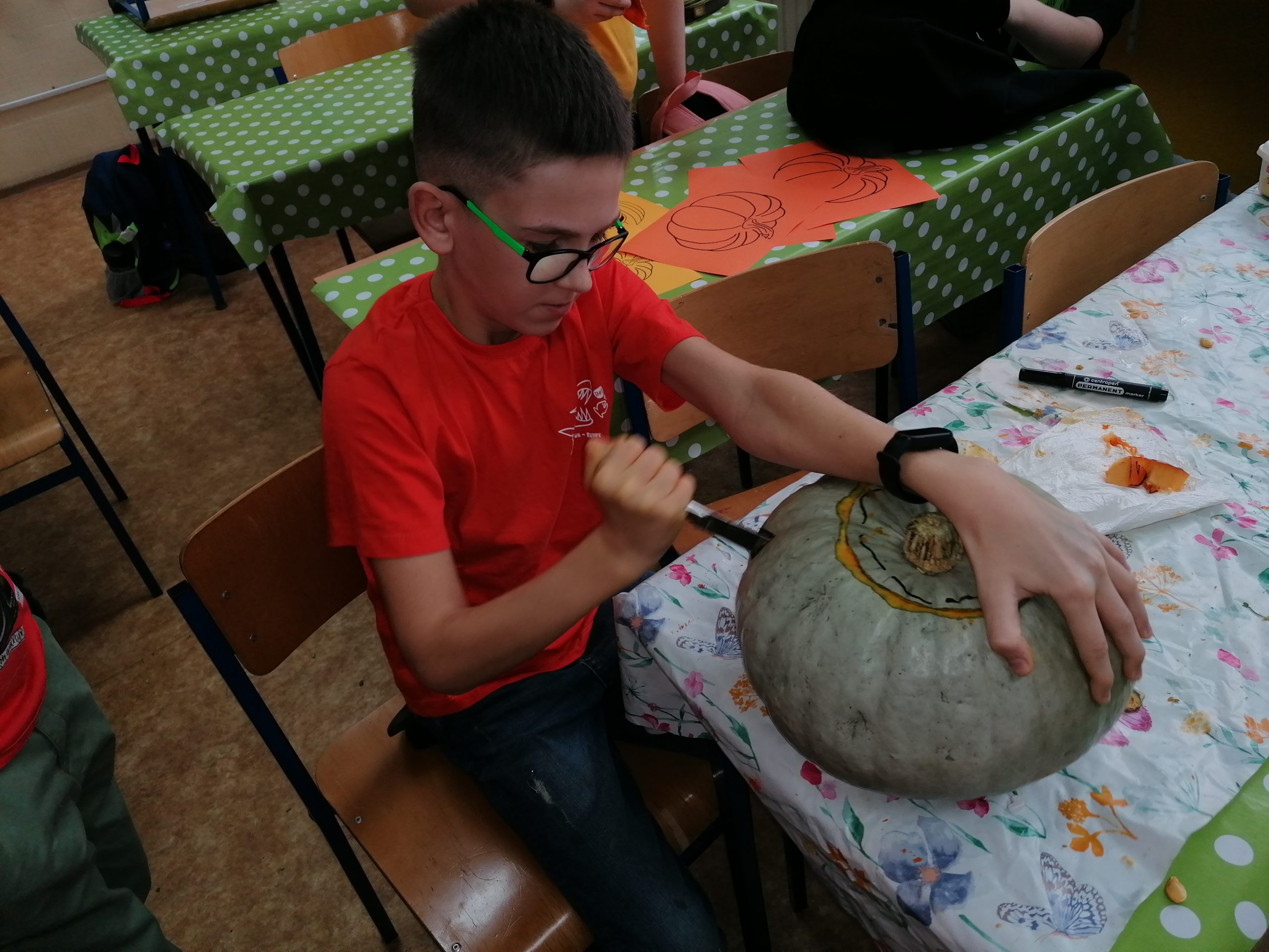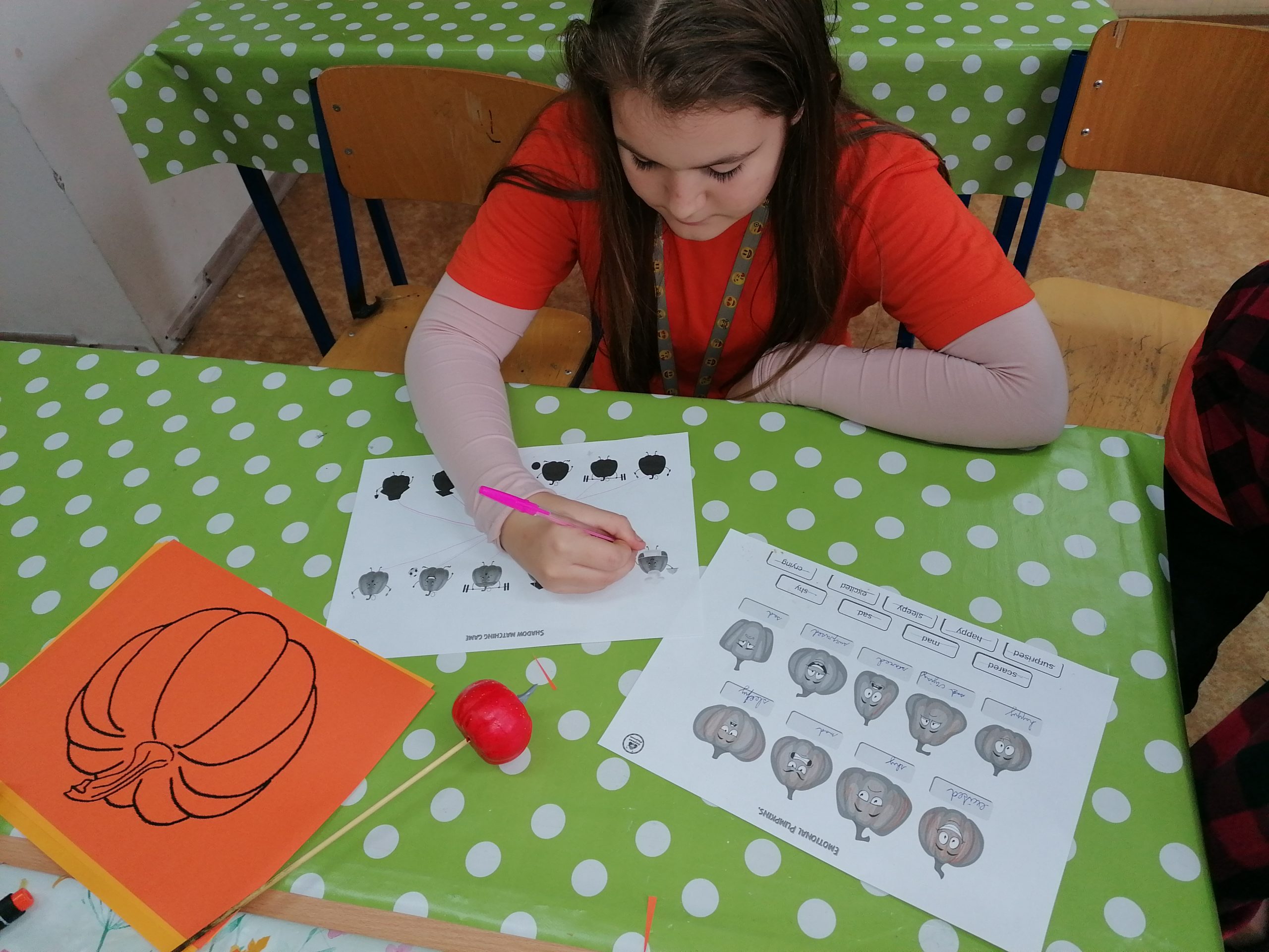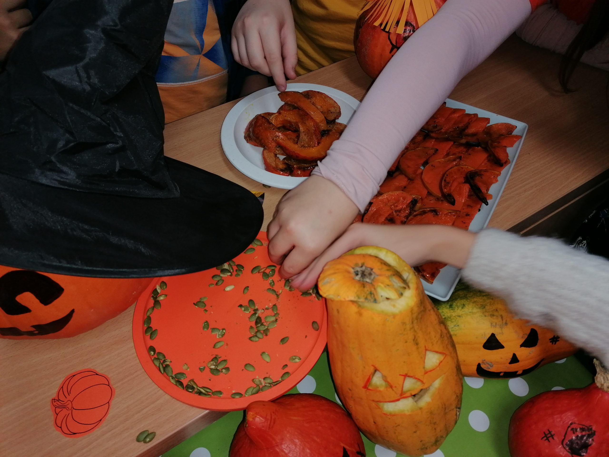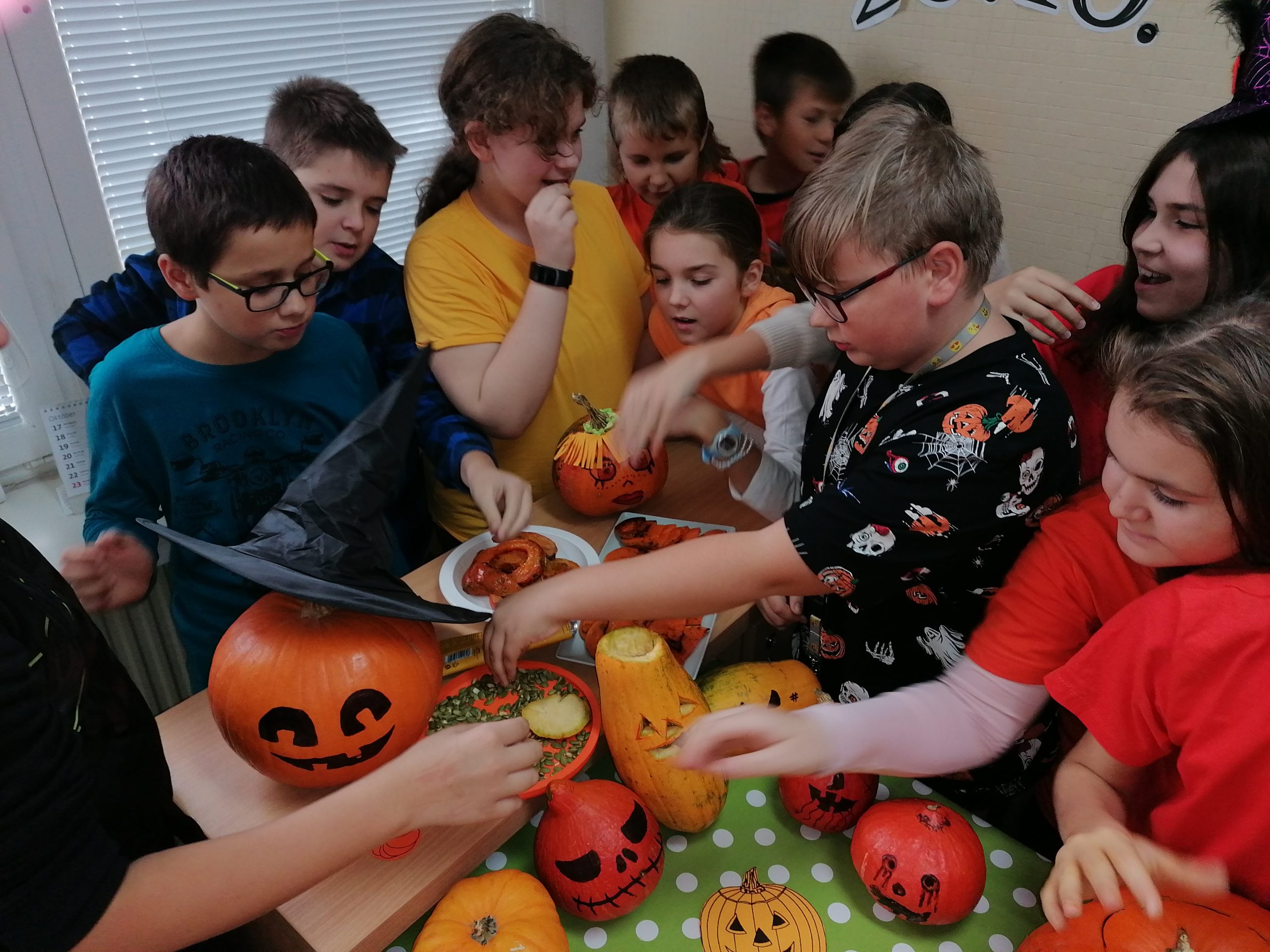 V tento deň sa naša angličtina taktiež „zoranžovela“. V rámci poznávania kultúry anglofónnych krajín sme si urobili tekvicovú hodinu. Okrem vyrezávania tekvíc, vypĺňania tematických pracovných listov a receptov v angličtine sme si celú tekvicovú atmosféru dotvorili oranžovým oblečením a ochutnávkou tekvicových dobrôt.