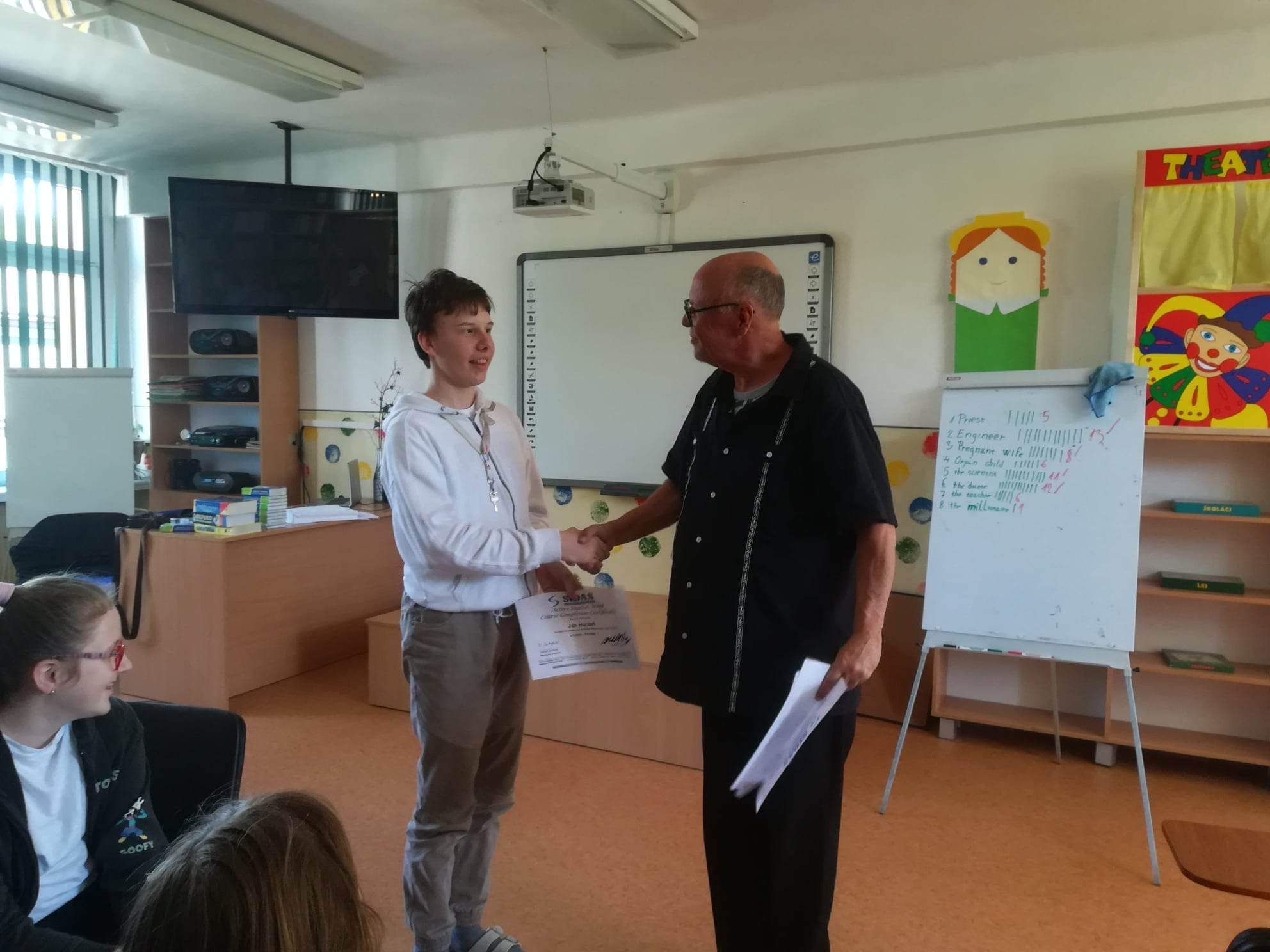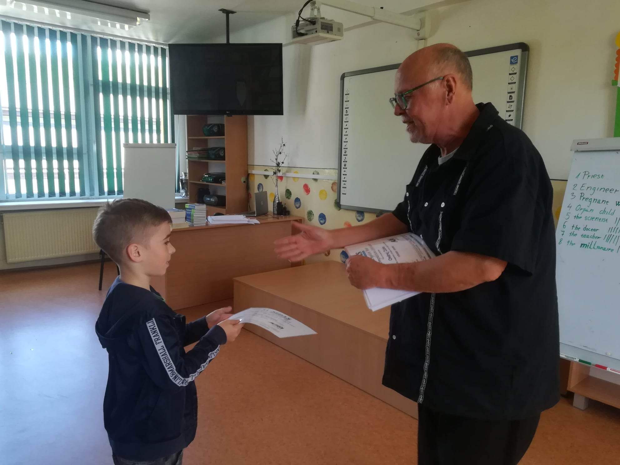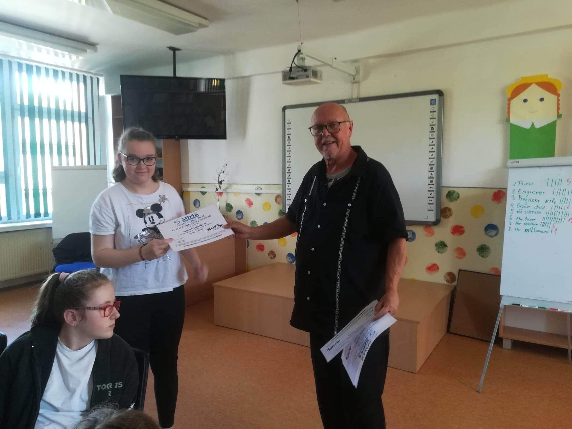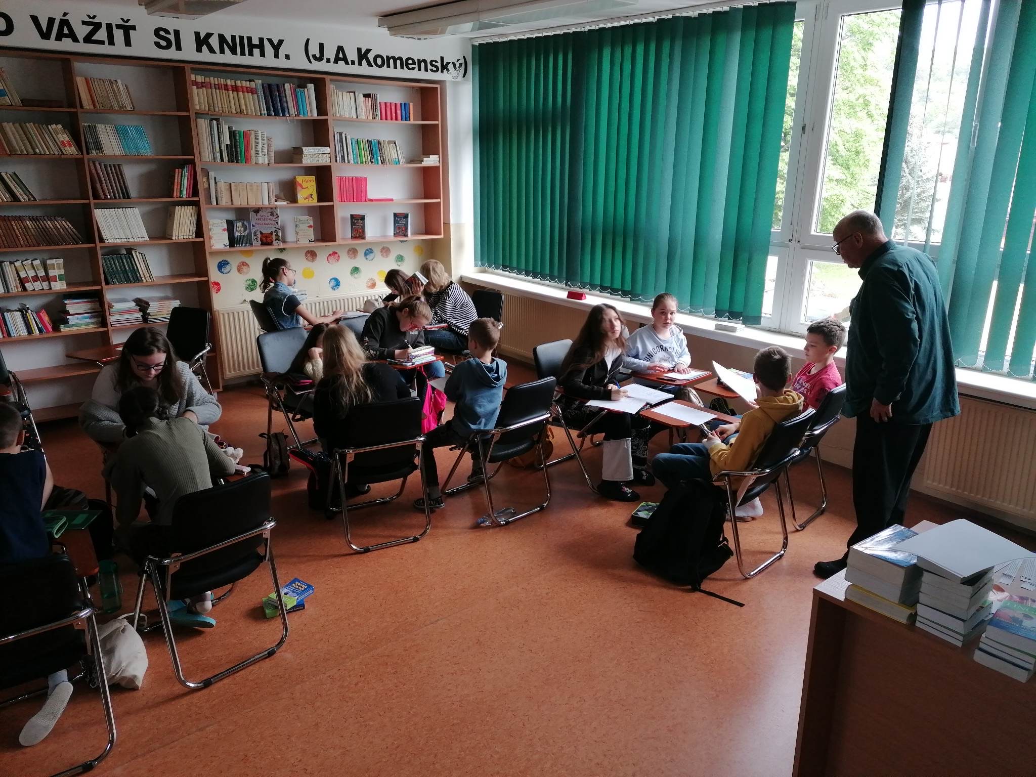 Prvý májový týždeň si mohli žiaci našej školy opäť posilniť svoje jazykové zručnosti týmto unikátnym spôsobom. Z agentúry Sidas k nám tentoraz prišiel lektor Mr. Mark Dodge z USA. Vyučovalo sa bez skúšania a známok, len komunikácia zábavnou formou.