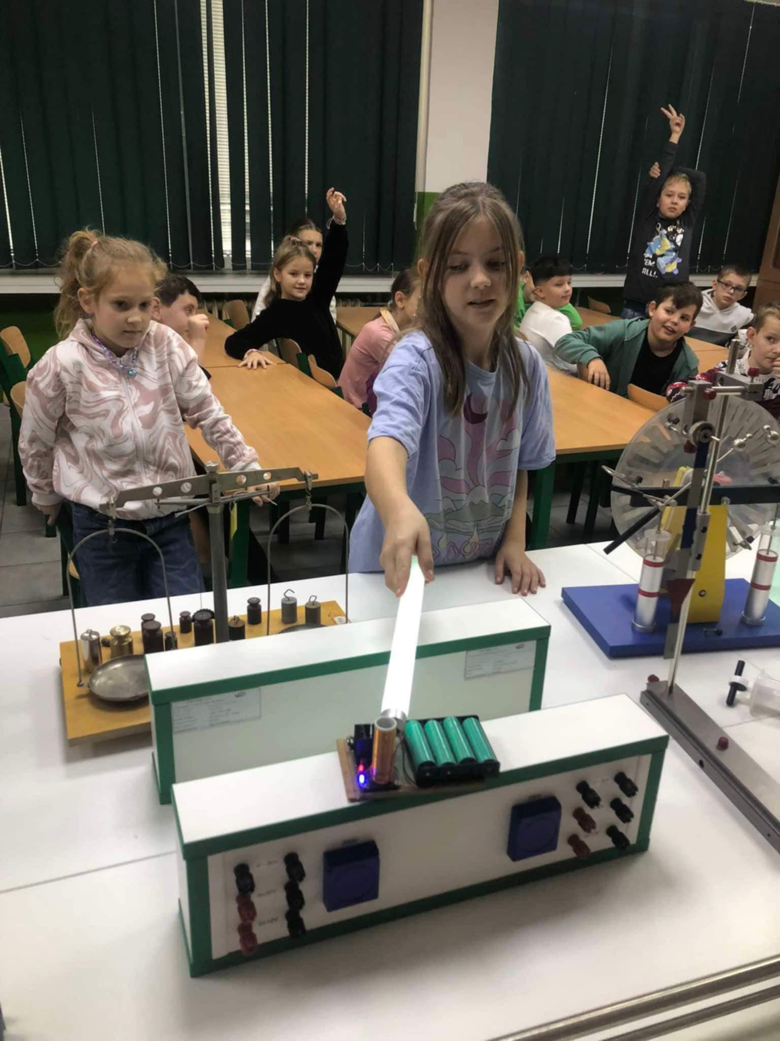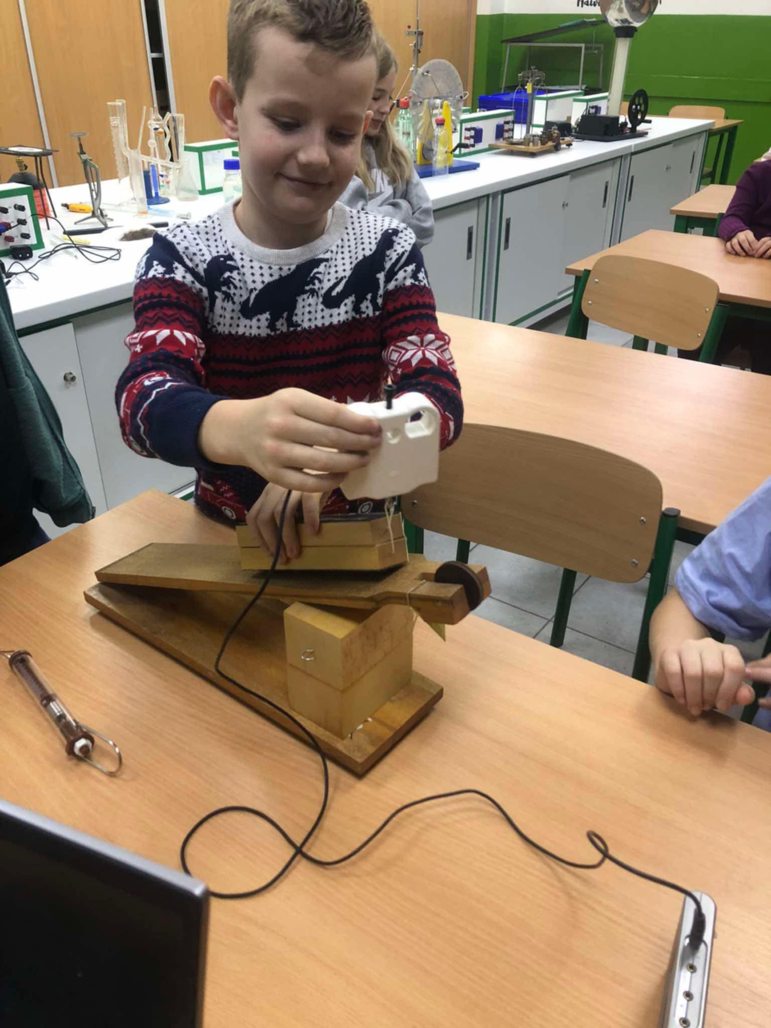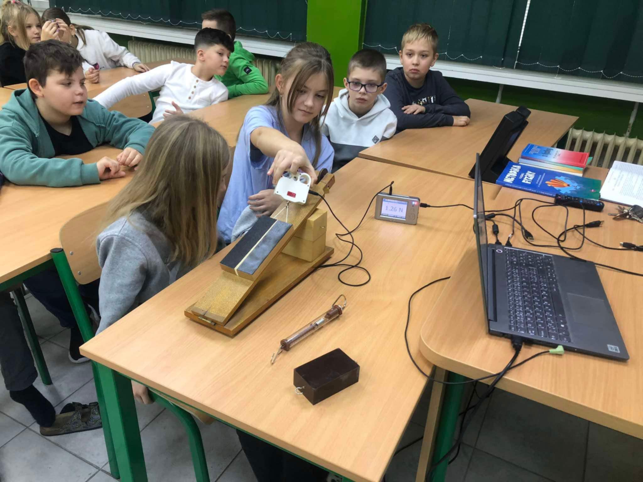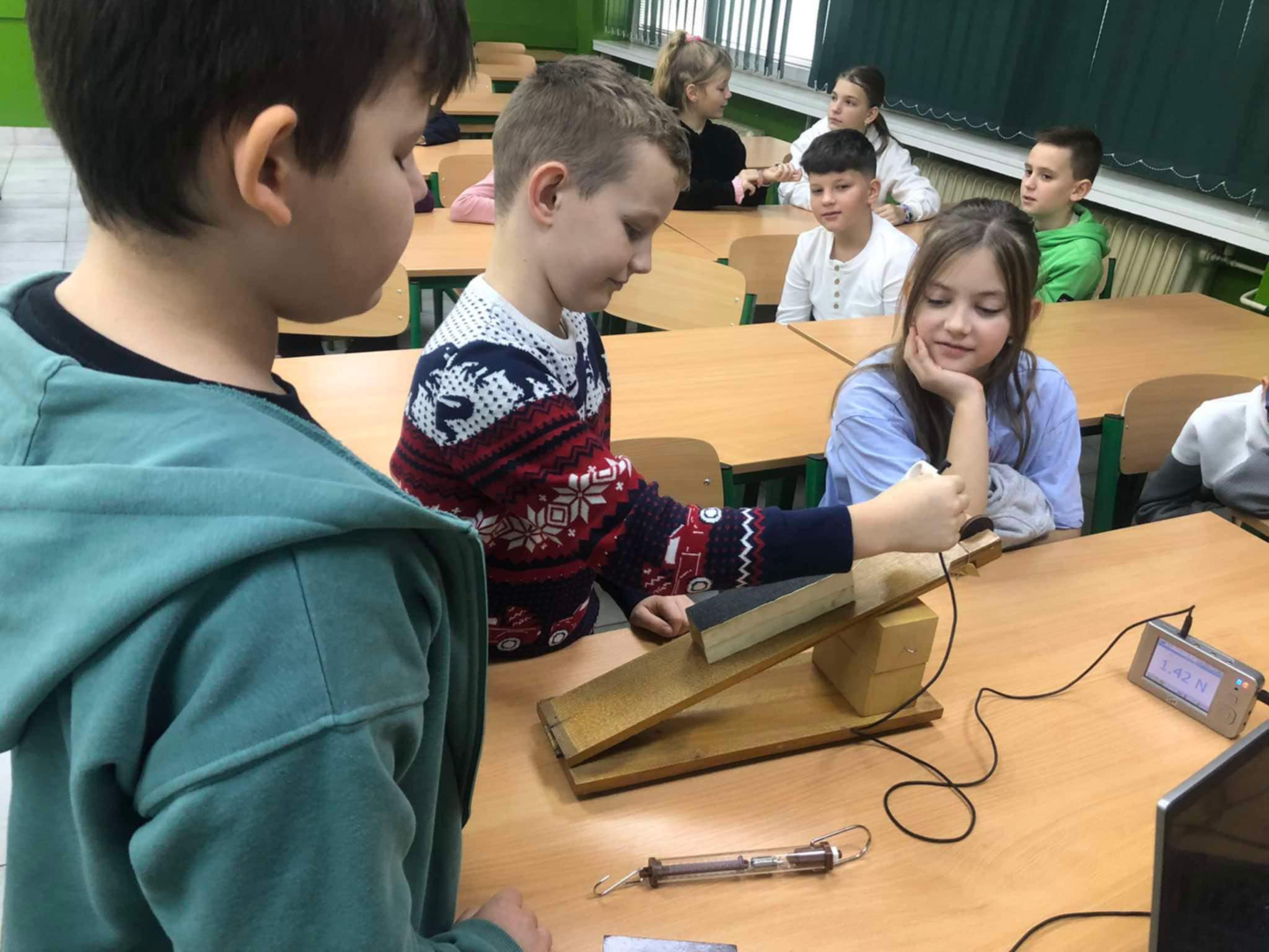 4. C si užila hodinu prírodovedy v učebni fyziky s pánom učiteľom Jenčkom. Okrem iného zistili aj to ako funguje naklonená rovina ![]()