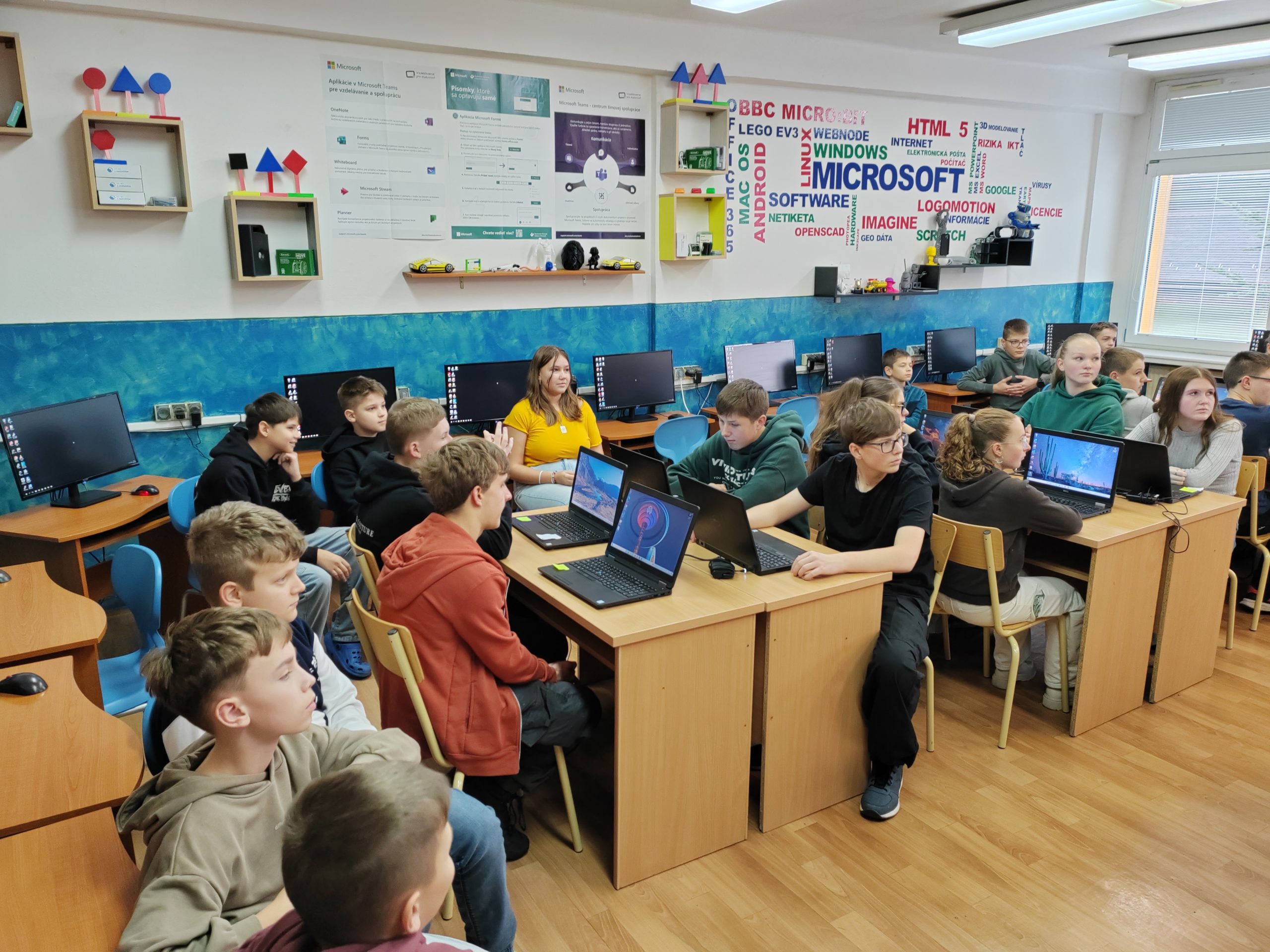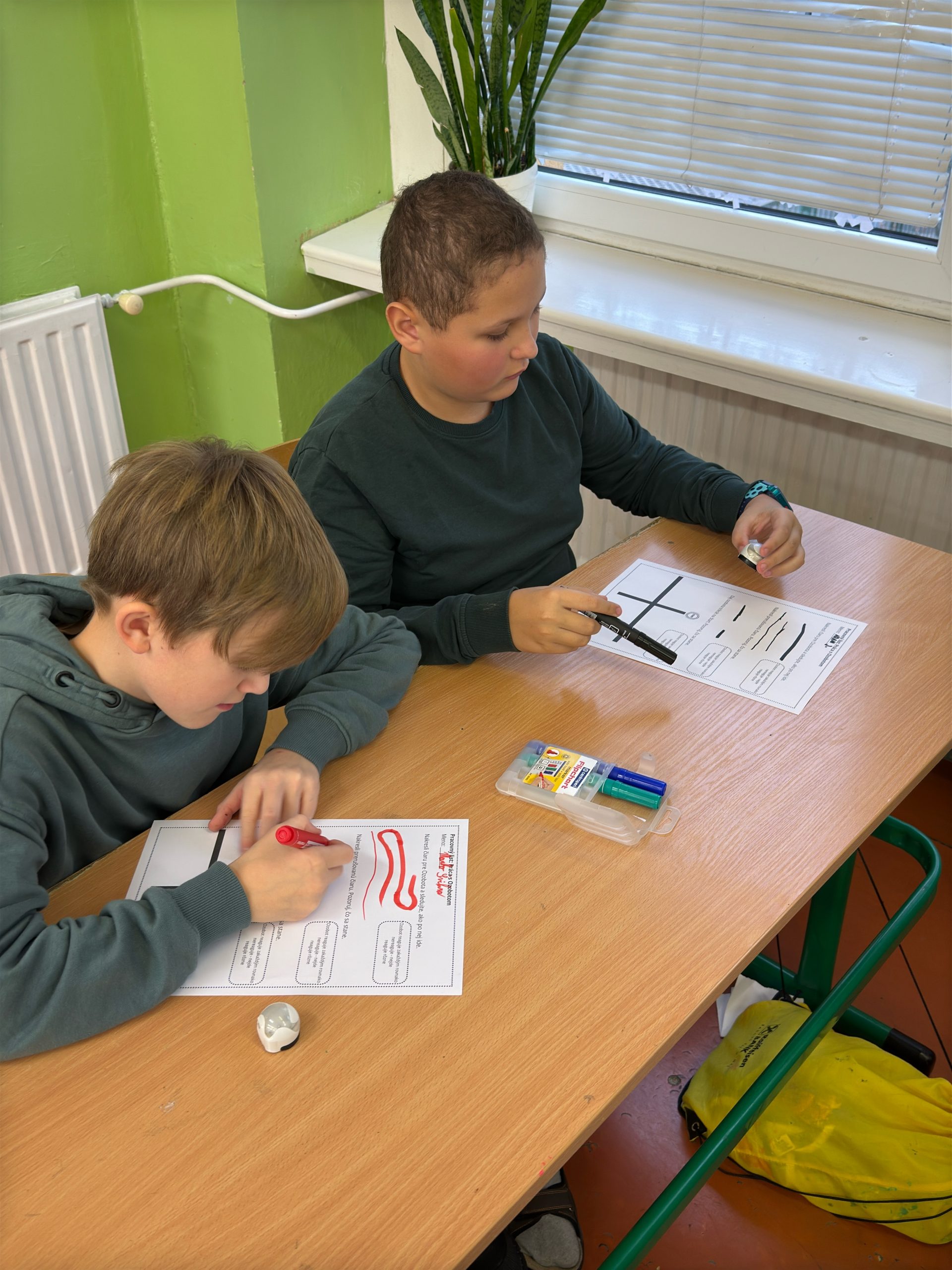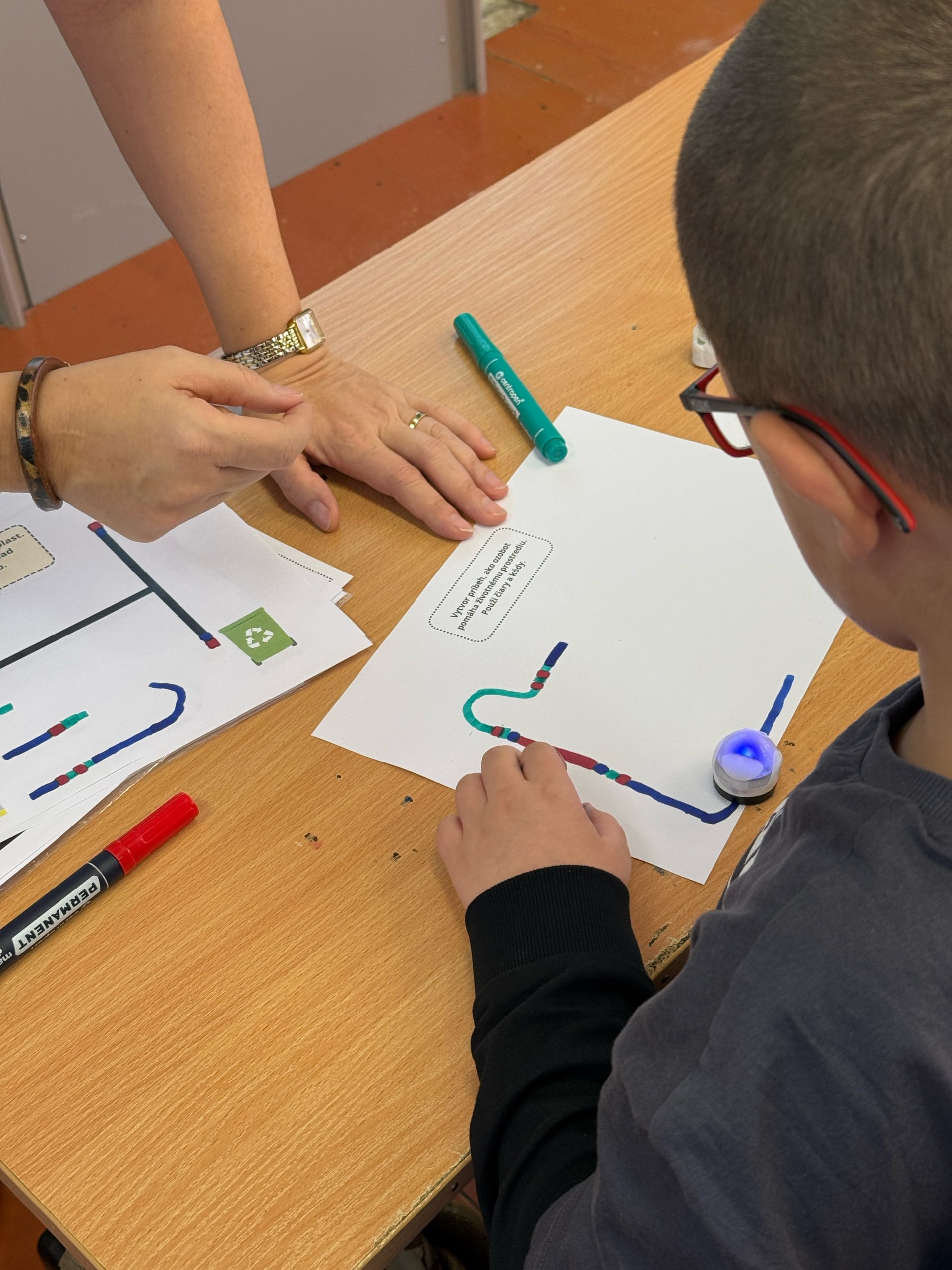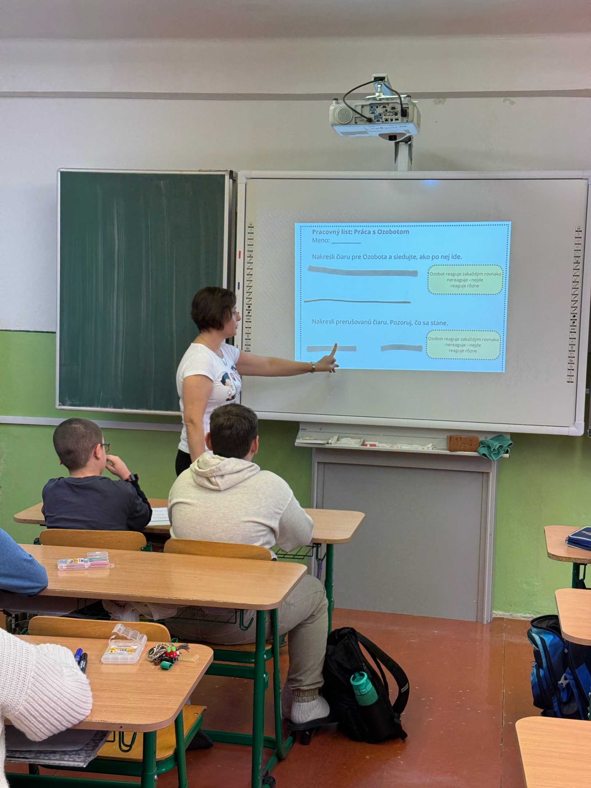 Pedagógovia sa zúčastnili hodín tried 3.C a 5.C, kde prezentovali robotiku s pomocníkmi Bee-Bot včielkou a Ozobotom.