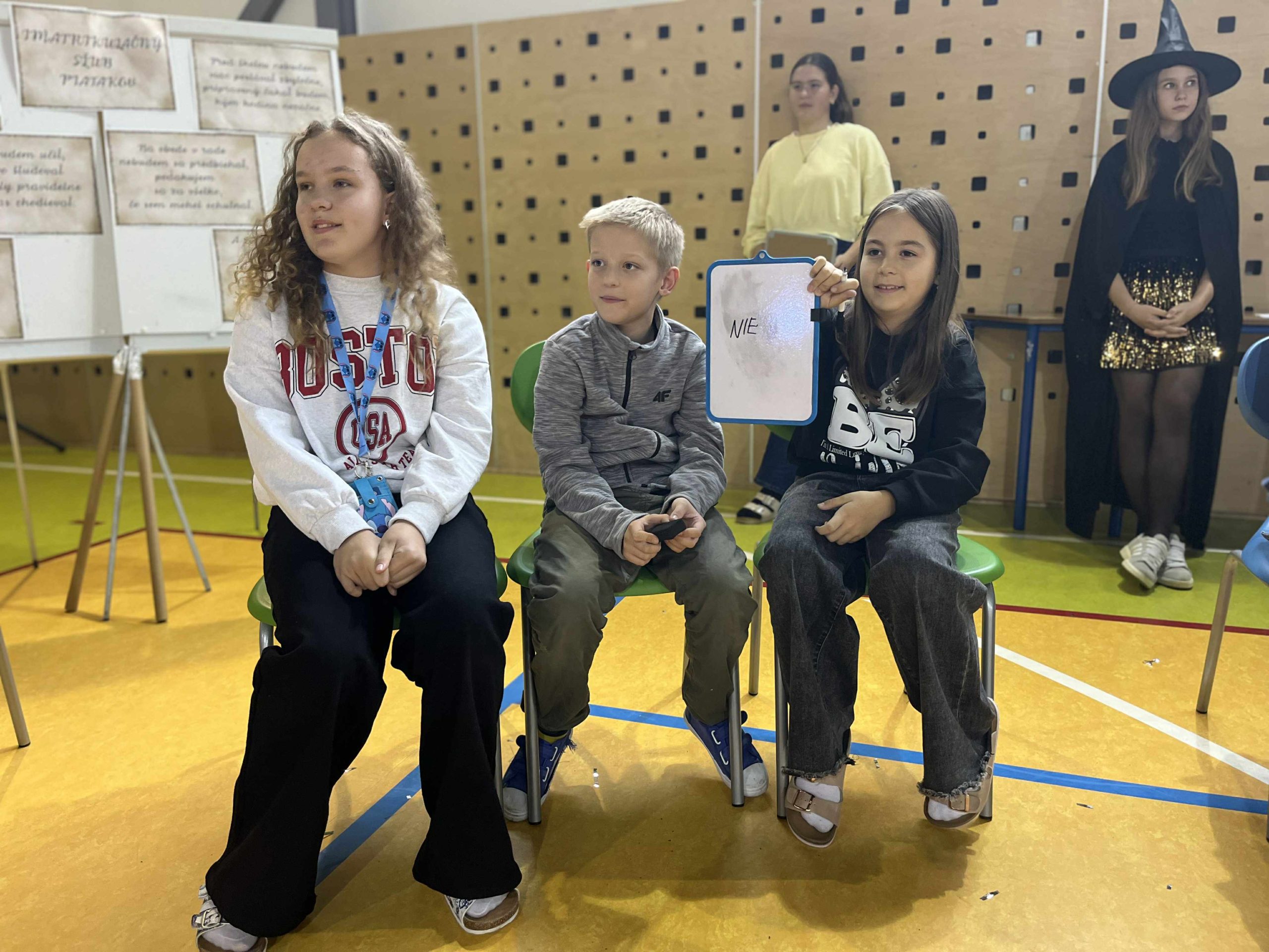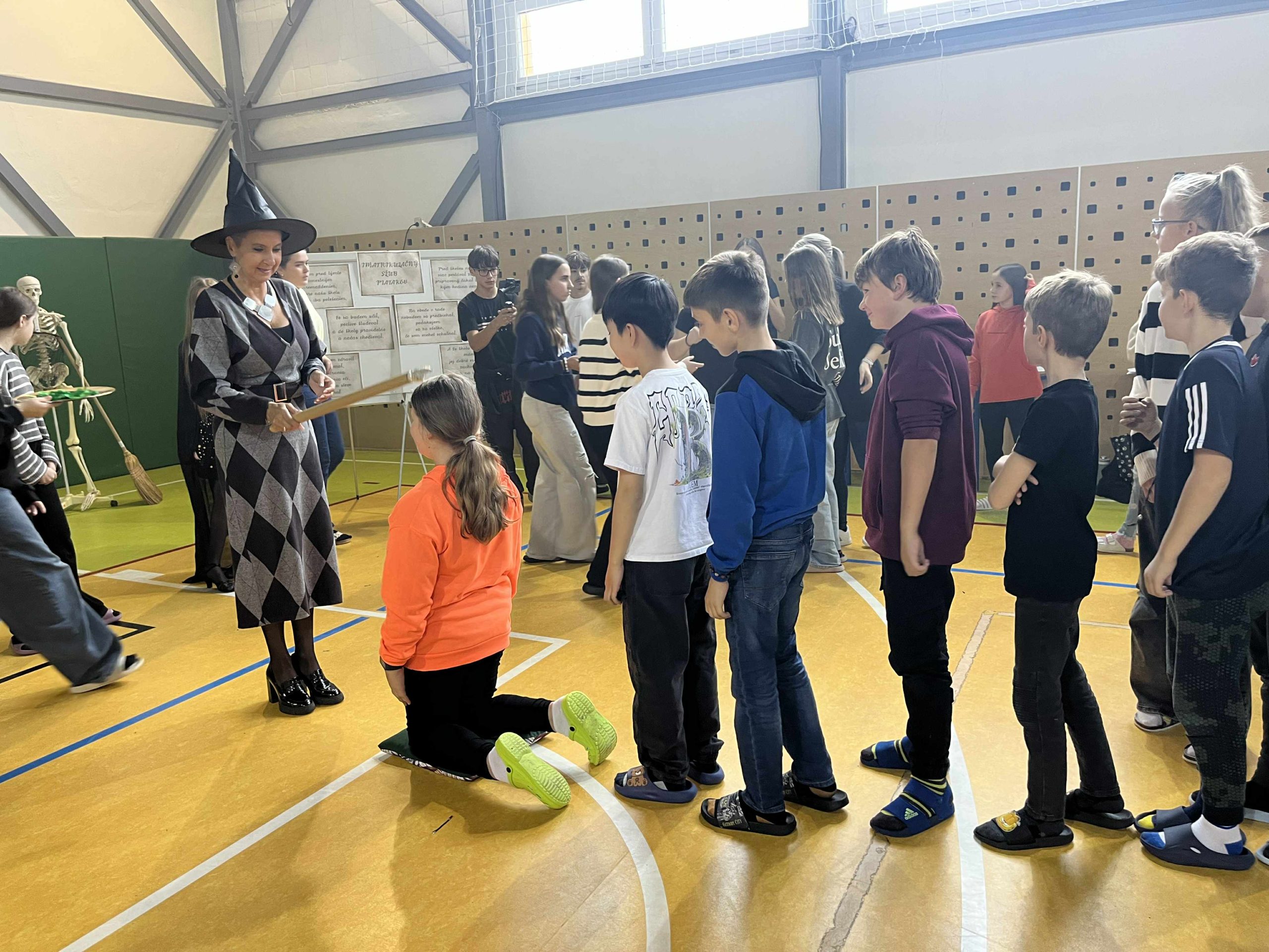 Na našej škole sa konala imatrikulácia piatakov – no nešlo o obyčajné privítanie! Celé poobedie sa nieslo v čarovnej atmosfére, pretože témou tohtoročnej imatrikulácie bola ŠKOLA MÁGIE! Telocvičňa sa premenila na veľkú sieň plnú tajomstiev, čarodejníc, kúzelníkov a magických úloh. Piataci museli dokázať, že sú hodní vstúpiť medzi „veľkáčov“ – a teda oficiálne patriť na druhý stupeň. Čakalo ich množstvo zábavných súťaží, hier a čarodejníckych výziev, v ktorých si zmerali sily nielen medzi sebou, ale aj s učiteľmi, ktorí sa s nadšením zapojili. Atmosféra bola skvelá – smiech, súťaživosť aj kúzla boli v plnom prúde. Po oficiálnej časti nasledovala diskotéka, kde si všetci zatancovali a oslávili úspešné prijatie piatakov medzi starších žiakov. Od dnešného dňa sú teda piataci plnoprávnymi členmi druhého stupňa – a navyše čerstvými absolventmi Školy mágie!
