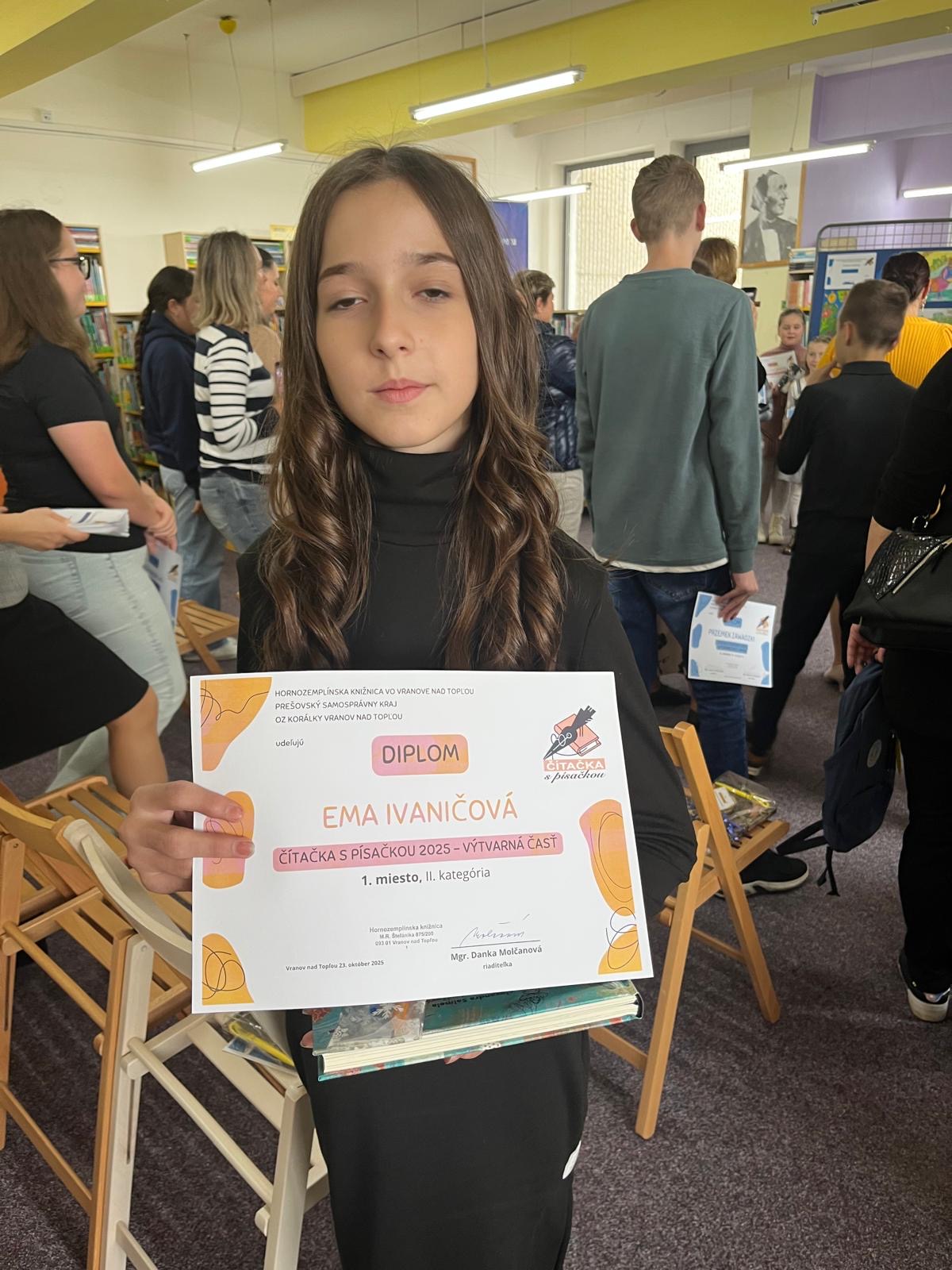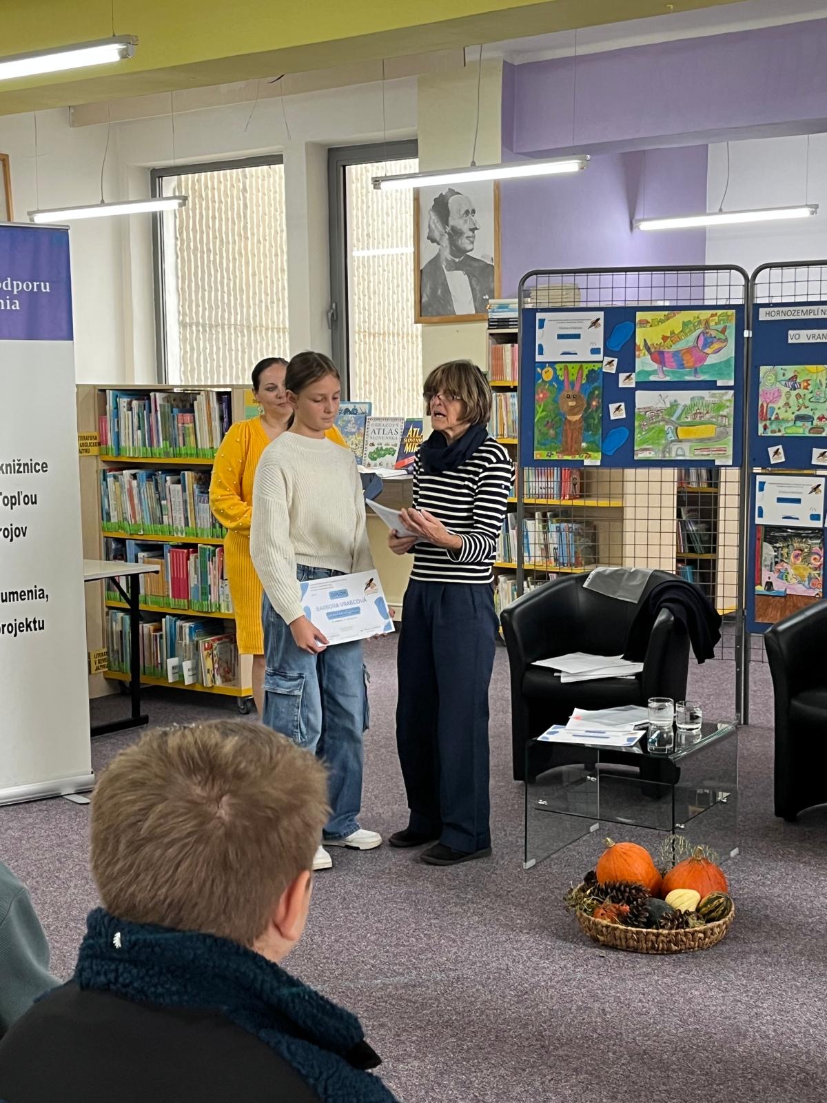 Vo štvrtok 23.10.2025 sme sa v Hornozemplínskej knižnici vo Vranove nad Topľou zúčastnili odborného seminára spojeného s vyhodnotením 17. ročníka regionálnej súťaže Čítačka s písačkou. Výtvarné práce hodnotil ilustrátor Miroslav Regitko a literárne práce spisovateľka Alžbeta Verešpejová.